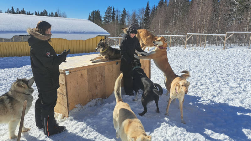 - Du wirst dein eigenes 4er-Gespann führen und insgesamt etwa 90 km mit Schlittenhunden zurücklegen und wir werden mitten in der schwedischen Wildnis in einem beheizten Tipi übernachten.